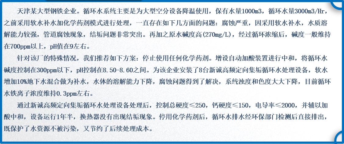 天津大型鋼鐵企業(yè)冷卻循環(huán)水除垢